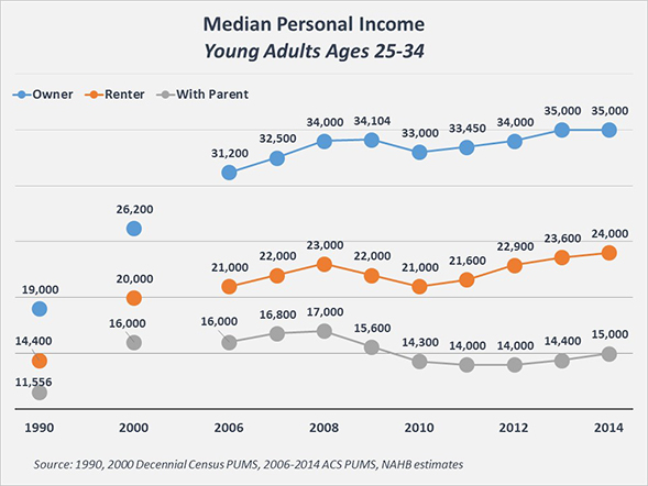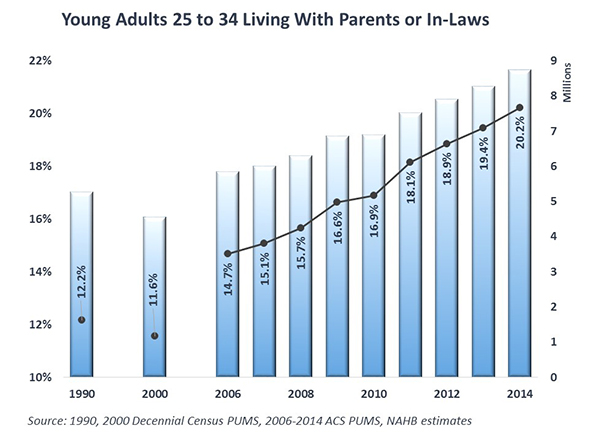 RISMEDIA, Wednesday, February 17, 2016— New NAHB Economics research shows that two million households headed by 25 – 34 year olds are missing from the current housing market but could have been active players if the headship rates remained at the 2000 levels. Instead, a rising number of young adults choose to stay with their parents or parents-in-law. As of 2014, more than 20 percent of young adults ages 25 to 34, or 8.8 million, live in homes of their parents or parents-in-law. This represents a sharp increase since 2000 when less than 12 percent, or 4.6 million, lived with parents. Even going back to 1990, when the youngest baby boomers filled the 25-34 age bracket, those living with parents accounted for 12.2 percent, or 5.3 million. The rising probabilities of young adults to live with parents undoubtedly coincide with several recent demographic trends, such as the growing tendencies of 25-34 year olds to marry and have children later in life. A changing ethnic and cultural make-up of young adults proved to be less relevant since the share of immigrants in this age bracket actually declined from 2006 to 2014, and the share of Hispanics (who form larger households and later in life) fluctuated around 20 percent, with no clear trend, since at least 2006. Rising college enrollment did not contribute much to the long-run trend of rising shares of young adults staying with parents either. Less than 13 percent of 25-34 year olds were enrolled in college or other school, as of 2014. The comparable shares in 1990 and 2000 were just slightly below, close to 12 percent. The share rose from 12 percent in 2007 to 14 percent in 2011 but came back down to under 13 percent by 2014. These short-term fluctuations suggest that college attendance among 24-35 year olds is cyclical, rising during the periods of high unemployment and declining as the economy improves, but contributing little to the long-run trend of rising shares of young adults living with parents. Looking at 25-34 year olds who were able to strike out on their own and form their own households, the data reveal a shift toward renting and away from homeownership. Homeownership rates for this age group dropped from close to 47 percent in 2006 to 37 percent in 2014. The study points at the lack of income growth for young adults as a factor undermining their economic ability for independent living and homeownership. The analysis shows that 25-34 year olds were most severely affected by stagnating incomes. This age group showed virtually no personal income growth since 2006 while the median income for older groups grew almost 11 percent. The income gap also widened between homeowners ages 25-34 and those who stay with parents. Young adults who own a home are the top earners in their age group. They also registered significant gains in personal income (though not adjusted for inflation), with the median income rising from $26,200 in 2000, to $31,200 in 2006 and further to $35,000 by 2014. Meanwhile, young adults living with parents earn significantly less than their peers do, partially because they are twice as likely to be unemployed. More importantly, this group registered no growth in median personal income since 2000. More concerning, their median personal income is now lower than it was 14 years ago, $15,000 in 2014 compared to $16,000 in 2000. The analysis suggests that the income requirements for independent living, and especially for owning a home, increased over the years, leaving many young adults with stagnating incomes behind at homes of their parents. The complete NAHB report is available to the public as a courtesy of Housing Economics Online. This post was originally published on NAHB’s blog, Eye on Housing Copyright© 2016 RISMedia, The Leader in Real Estate Information Systems and Real Estate News. All Rights Reserved. This material may not be republished without permission. |